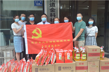 6月19日,在端午佳节来临之际,为了感谢环卫工人们在疫情期间仍然不畏艰险逆行而上,起早贪黑地忙碌在环卫工作第一线,长期以来为城市环境默默做出的奉献,长沙东大肛肠医院党支部及工会联合金科社区开展了端午慰问环卫工人活动,为他们送上浓浓的端午节祝福。