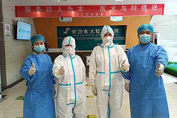 医护人员由院长周鹏带队,抵达目的地后,大家有条不紊地清洁消毒、准备物资,以最快速度进入工作状态。